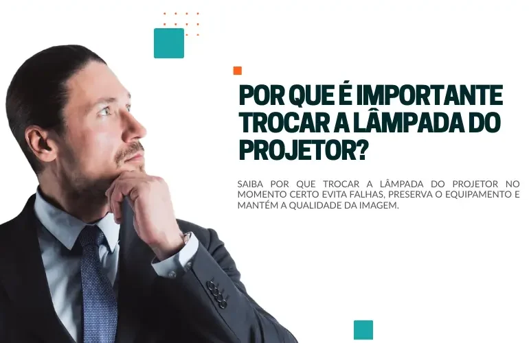A imagem fica mais fraca, com menos brilho, as cores perdem intensidade, o contraste diminui e a projeção exige ambientes totalmente escuros. Em muitos casos, o próprio equipamento exibe um alerta indicando a necessidade de substituição.